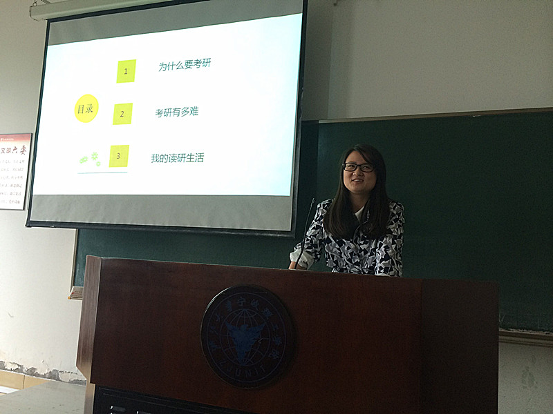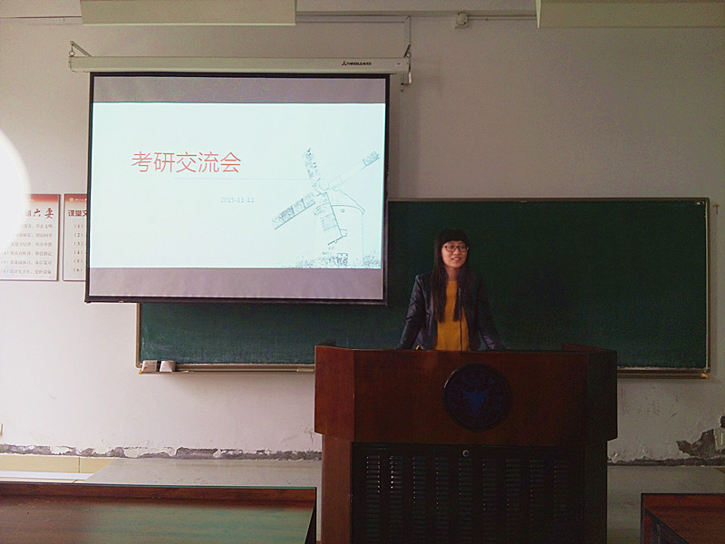 随后,马晶晶同学从为什么要考研、考研有多难及研究生的生活三个方面作了分享,为正处在迷茫边缘的大三同学们拂去心头的疑惑与顾虑,鼓励大家选择考研,选择一段绝对让自己人生无悔的道路。谈及现在读研究生的生活,现场的同学立刻热闹起来,他们从学姐口中与“高大上”的研究生有了直接的接触,对于研究生学费的收取、奖学金制度、学习生活情况等有了深入的了解,不少同学表达了对研究生生活的向往与憧憬。交流会也在大家热烈的掌声中结束。